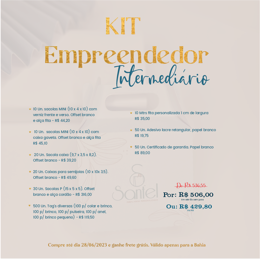 O kit empreendedor é ideal para quem quer dar um up no seu negócio.
