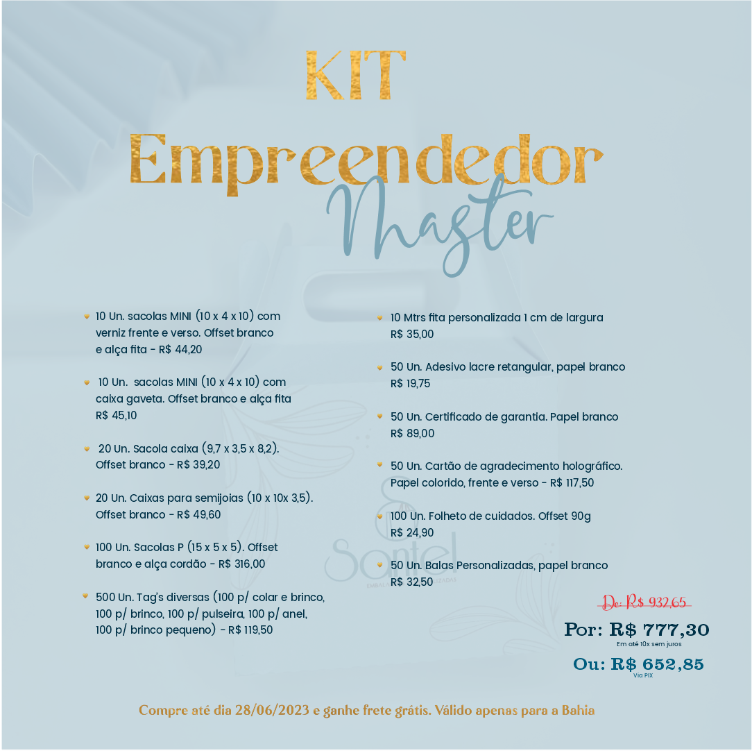 O kit empreendedor é ideal para quem quer dar um up no seu negócio.